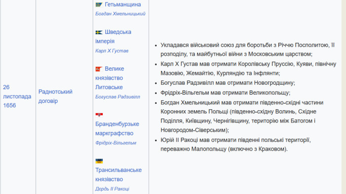 1654-1655 союзне українсько-російське військо веде воєнні дії проти Польщі. Вересень 1655 р. польські сили розбиті під Городком на Львівщині→звільнено землі західної України. Напад Швеції на Польщу і її окупація налякали Москву, яка починає готуватися до війни зі шведами.24 жовтня 1656 р. Віленське перемир'я Польщі з Москвою проти Швеції. Воєнні дії між Москвою і Річчю Посполитою припиняються. Жодна зі сторін не повинна починати переговори зі Швецією. Спільні воєнні дії проти Швеції. У разі смерті польського короля – престол мав зайняти московський цар. Козаків до переговорів не допустили, Хмельницький вважав що цим перемир'ям Москва зрадила Гетьманщину → пошук нових союзників проти Польщі.