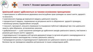 Цивільний захист здійснюється за такими основними принципами:• гарантування та забезпечення державою конституційних прав громадян на захист життя, здоров’я та власності;• комплексного підходу до вирішення завдань цивільного захисту;• пріоритетності завдань, спрямованих на рятування життя та збереження здоров’я громадян;• мінімізації ризику надзвичайних ситуацій;• гласності, прозорості, вільного отримання та поширення публічної інформації про стан цивільного захисту, крім обмежень, встановлених законом;• добровільності — у разі залучення громадян до здійснення заходів цивільного захисту, пов’язаних з ризиком для їхнього життя і здоров’я;• відповідальності посадових осіб органів державної влади та органів місцевого самоврядування за дотримання вимог законодавства з питань цивільного захисту;• виправданого ризику та відповідальності керівників сил цивільного захисту за забезпечення безпеки під час проведення аварійно-рятувальних та інших невідкладних робіт.