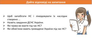 Що таке надзвичайні ситуації ?Події, що порушують спокій, призводять до загибелі або втрат та вимагають негайного реагування. Загальні ознаки НС• наявність або загроза загибелі людей чи значнепогіршення умов їхньої життєдіяльності• заподіяння економічних збитків• суттєве погіршення стану довкілля