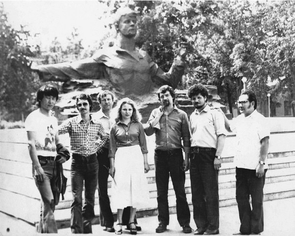 Біля пам’ятника С. Єсеніну в Рязані з колегами – слухачами Вищих літературних курсів при Московському літературному інституті ім. М. Горького (1981)
