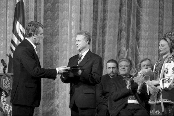 Вручення Президентом України Віктором Ющенком диплома та медалі лауреата Національної премії України ім. Т.Шевченка (Київ, 2006)