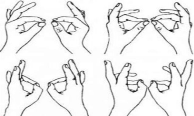 "Кільця" або "ланцюжки": Швидке перебирання пальців, утворюючи кільця з великого та інших пальців по черзі на обох руках.