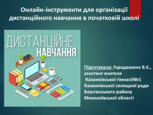 Онлайн-інструменти для організації дистанційного навчання в початковій школіПідготувала: Городашина В.Є.,асистент вчителя Казанківської гімназії№1 Казанківської селищної ради Баштанського району Миколаївської області