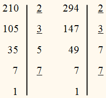 Розкладемо числа 210 і 294 на прості множники: