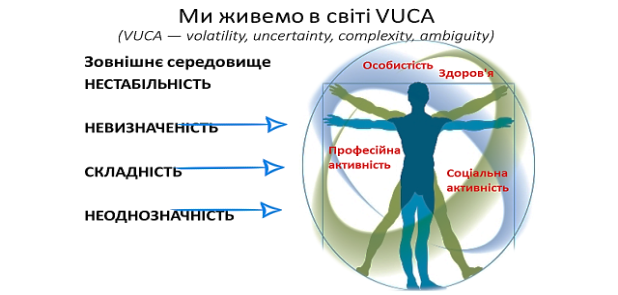 Реалії сучасного світу такі, що доводиться жити в нестабільному, невизначеному, складному та неоднозначному світі. Для такого світу американці навіть придумали спеціальний термін – світ VUCA.
