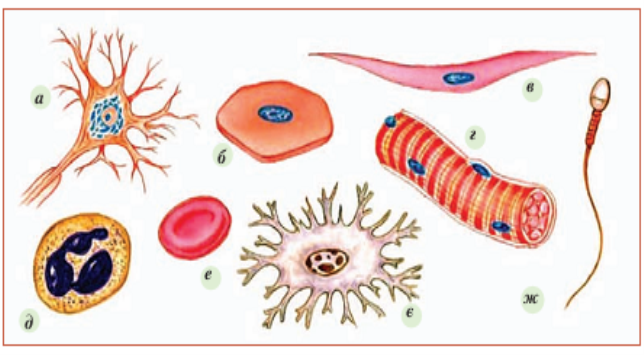 Завдання 1. Ідентифікуйте тип клітин (цифри 1-8) за їх зображеннями (букви на малюнку а-ж) та їхніми функціями (римські цифри I-VIII) i заповніть таблицю: