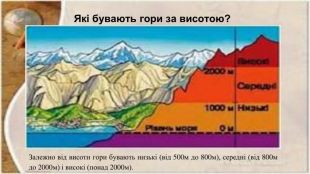 Українські Карпати є частиною Східних Карпат. Їх поділяють на п’ять областей. До Зовнішніх Карпат належать Скибові, Вододільно-Верховинські та Полонинсько-Чорногірські Карпати, які мають флішову будову. Рахівські і Чивчинські гори, Закарпатське низькогір’я відносяться до Внутрішніх Карпат і складені метаморфічними та магматичними породами. Найвищою вершиною Українських Карпат є гора Говерла - 2061 м. Кримські гори розташовані на півдні Кримського півострова. Вони складаються з трьох паралельних пасм - Зовнішнього, Внутрішнього та Головного. Найвищою вершиною Кримських гір є гора Роман-Кош - 1545 м. ВИСНОВКИ