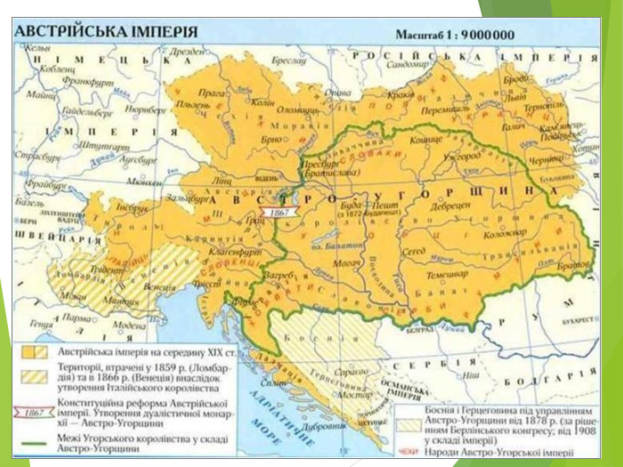 Тема уроку: «Діяльність русофілів і народовців»ПЛАНДуалістична угода 1867 року та її наслідки для українців. Напрямки діяльності русофілів (москвофілів). Народовці (українофіли). На уроці ми: З’ясуємо за яких обставин Австрійська імперія перетворилася на Австро-Угорщину;Проаналізуємо діяльність москофілів і народовців. Розкриємо роль «Просвіти» у піднесенні національної свідомості через освіту;Оцінимо внесок НТШ у розвиток професійної української науки