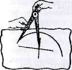 Після розмічання центра кола беруть розмічальний циркуль і розводять його ніжки так, щоб відстань між ними дорівнювала радіусу кола. Цю відстань вимірюють лінійкою. Впевнившись в тому, що циркуль встановлено правильно, одну його ніжку опускають у лунку центра кола. Правою рукою тримають циркуль за головку, а лівою беруть за вільну ніжку і описують нею лінію. Рукою, що тримає головку циркуля, натискують на ніжку, встановлену в лунку центра кола. Якщо цього не зробити, циркуль зіскакуватиме з місця і якість розмітки погіршиться.
