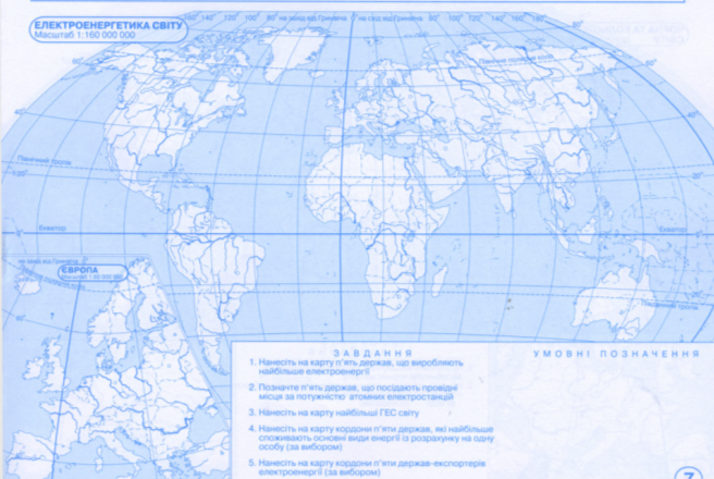 Опрацюйте матеріал за покликанням , позначте в контурній карті країни – лідери з виробництва чистої електроенергії.