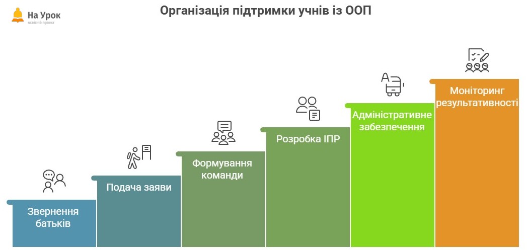 Процес організації підтримки для учнів із ООП є чітко регламентованою процедурою, що базується на взаємодії батьків, закладу освіти та фахівців ІРЦ. Цей механізм покликаний забезпечити дитині умови, які максимально відповідають її індивідуальним можливостям.