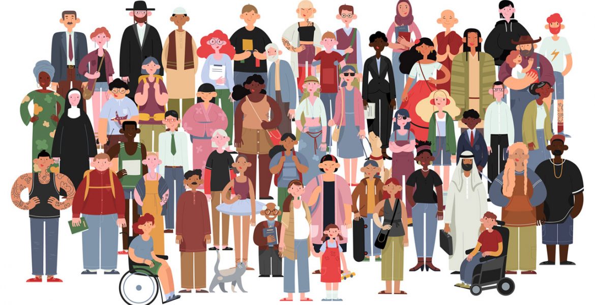 Запропонуйте школярам уважно розглянути запропоноване зображення: на ньому кожна людина чимось відрізняється від інших, через що зазнає дискримінації. Поміркуйте зі школярами, із якою саме дискримінацією може стикатися люди.