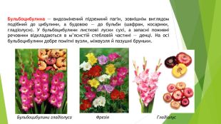 Бульбоцибулина — видозмінений підземний пагін, зовнішнім виглядом подібний до цибулини, а будовою — до бульби (шафран, косарики, гладіолуси). У бульбоцибулини листкові луски сухі, а запасні поживні речовини відкладаються в м’ясистій стебловій частині — денці. На осі бульбоцибулини добре помітні вузли, міжвузля й пазушні бруньки. Бульбоцибулини гладіолуса Фрезія. Гладіолус