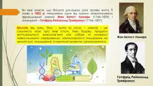 Термін «біологія» вперше вжив 1797 р. німецький професор анатомії Теодор Руз (1771–1803), пізніше 1800 р. термін застосував професор Дерптського університету Фрідріх Бурдах (1776–1847), а 1802 р. — Жан Батист Ламарк (1744–1829) Лудольф Тревіранус (1779–1864).