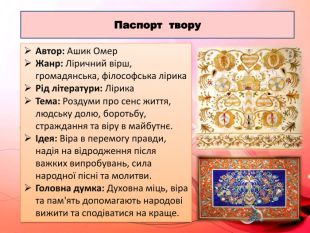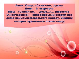 Презентація «Ашик Омер. «Скажи-но, душе». Доля й творчість.
