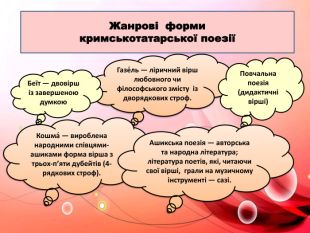 Вірш «Скажи-но, душе…»… (переспів О.Гончаренка) – філософський роздум про долю кримськотатарського народу. Східний колорит художнього стилю твору» створена до уроку української літератури у 8 класі НУШ (підручник О.Авраменка). Робота містить біографічні дані поета, ілюстративні матеріали, текст, аналіз, запитання на розуміння змісту, завдання.