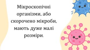 Мікроскопічні організми, або скорочено мікроби, мають дуже малі розміри.
