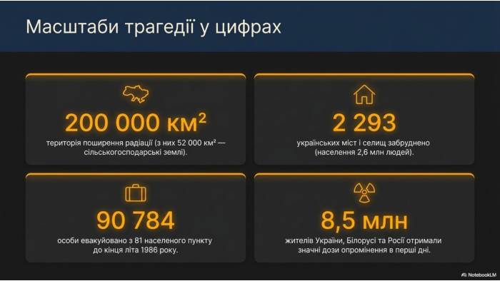Презентація "Чорнобильська трагедія в числах" для 4 класу (створено із залученням ШІ)