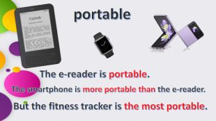 portable. The e-reader is portable. The smartphone is more portable than the e-reader. But the fitness tracker is the most portable.