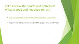 Презентацію до уроку англійської мови у 5 класі НУШ створено на основі підручника Prepare 1 НУШ для загальноосвітніх школ для допомоги вчителю в якості конспекту уроку, демонстраційного матеріалу до уроку. Урок включає в себе основні етапи планування та ходу уроку (включаючи мовленнєву зарядку, введення та опрацювання лексики, інтерактивні завдання на закріплення, фізкультхвилинку тощо)