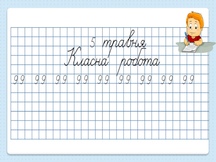 Хвилинка каліграфіїНапишіть число, що містить 9 десятків та 9 одиниць.