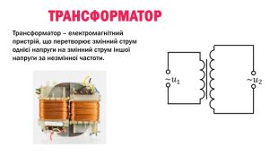 Трансформатор – електромагнітний пристрій, що перетворює змінний струм однієї напруги на змінний струм іншої напруги за незмінної частоти. Трансформатор~𝑢1 ~𝑢2