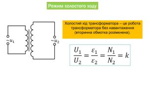 Будова та принцип дії трансформатора Якщо первинну обмотку трансформатора підключено до джерела змінного струму, то струм, який іде в її витках, утворює в замкненому осерді змінний магнітний потік ΦПронизуючи витки первинної та вторинної обмоток, змінний магнітний потік створює ЕРС самоіндукції е1; в первинній обмотці та ЕРС індукції е2, у вторинній обмотці.