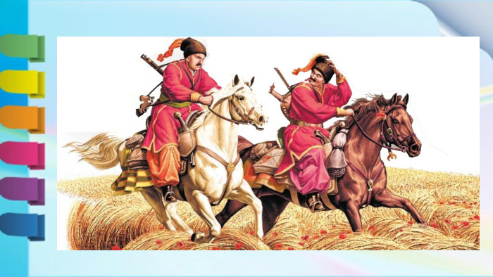 Історична довідкаІван Мазепа. Козаки були вільними людьми, що жили за порогами Дніпра, захищаючи свою землю та боролися за свободу. Вони були відомі своєю мужністю, вірністю, а також вмінням вправно володіти зброєю та їздити на конях. Їхній козацький дух і досі надихає сучасних українців на відвагу та героїзм. Богдан Хмельницький. Дмитро Вишневецький