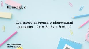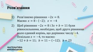 Приклад 2 Для якого значення 𝑏 рівносильні рівняння −2𝑥=8 i 3𝑥+𝑏=11?