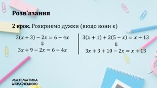 Лінійне рівняння з однією змінною. Дивіться відео-версію презентації за посиланням:https://youtu.be/D7 UVEw124y. IШукайте інші презентації до цього підручника за посиланням:https://vseosvita.ua/user/id882250/library?id_folder=148155