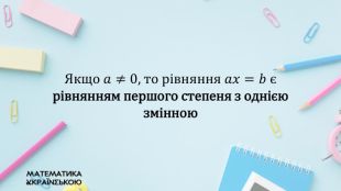 Якщо 𝑎≠0, то рівняння 𝑎𝑥=𝑏 є рівнянням першого степеня з однією змінною