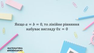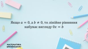 Якщо 𝑎=0, а 𝑏≠0, то лінійне рівняння набуває вигляду 0𝑥=𝑏