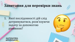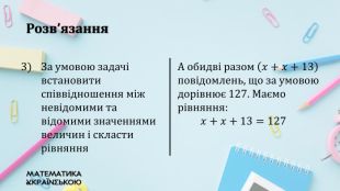 Презентація до уроку алгебри в 7 класі за темою "Розв'язування задач за допомогою лінійних рівнянь. Рівняння як математична модель задачі".