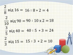 28 від 16= 16 :8∗2= 210 від 90= 90 :10 х 2= 35 від 40= 40 :5 ∗3= 23 від 15= 15 :3 ∗2= 4 18 24 10