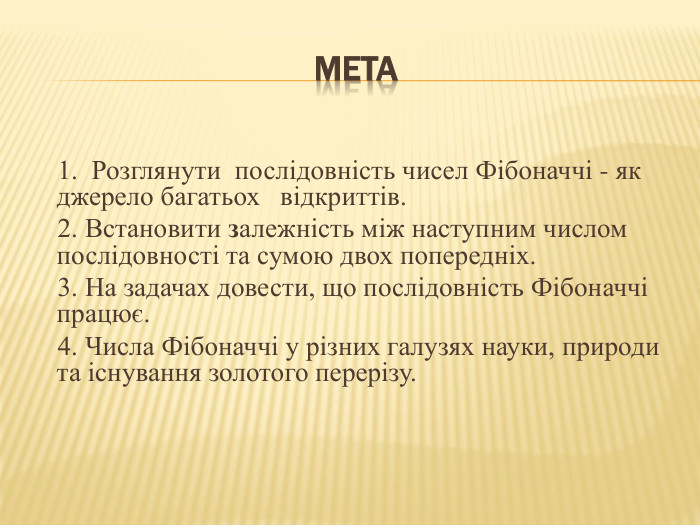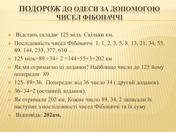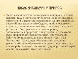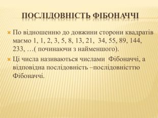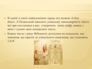 Розглянуто послідовність чисел Фібоначчі - як джерело багатьох відкриттів.