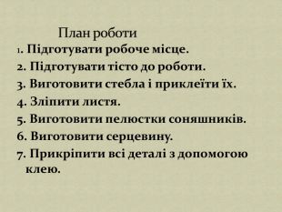 Формувати вміння працювати за зразком і створювати вироби за темою заняття.