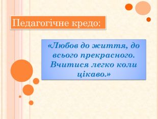«Любов до життя, до всього прекрасного. Вчитися легко коли цікаво.»Педагогічне кредо: