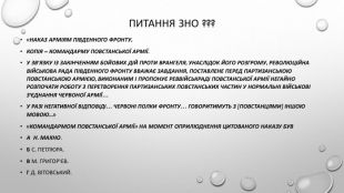 Питання зно ???«НАКАЗ АРМІЯМ ПІВДЕННОГО ФРОНТУ,копія – командарму Повстанської армії. У зв’язку із закінченням бойових дій проти Врангеля, унаслідок його розгрому, Революційна військова Рада Південного фронту вважає завдання, поставлене перед партизанською Повстанською армією, виконаним і пропонує Реввійськраді Повстанської армії негайно розпочати роботу з перетворення партизанських повстанських частин у нормальні військові з’єднання Червоної Армії…У разі негативної відповіді… червоні полки фронту… говоритимуть з [повстанцями] іншою мовою...»«Командармом Повстанської армії» на момент оприлюднення цитованого наказу був. А Н. Махно. Б С. Петлюра. В М. Григор’єв. Г Д. Вітовський.