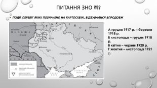 Питання зно ???На карті заштрихована територія. А Радянської Соціалістичної Республіки Тавриди в червні 1920 р. Б контрольована Російською армією барона Врангеля в грудні 1920 р. В передана УНР за умовами Брест-Литовського договору 1918 р. Г окупована військами Антанти наприкінці січня 1919 р.