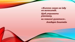 «Життя схоже на їзду на велосипеді. Щоб утримати рівновагу, ви повинні рухатися». Альберт Енштейн
