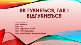Як гукнеться, так і відгукнеться. Закони Ньютона. Закон Архімеда. Закон Гука. Закон збереження енергіїЗакон відбивання хвиль. Закон заломлення світла. Закон прямолінійного поширення світла