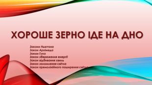 Хороше зерно іде на дно. Закони Ньютона. Закон Архімеда. Закон Гука. Закон збереження енергіїЗакон відбивання хвиль. Закон заломлення світла. Закон прямолінійного поширення світла