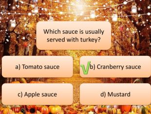 Which sauce is usually served with turkey?a) Tomato sauceb) Cranberry saucec) Apple sauced) Mustard√