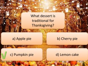 What dessert is traditional for Thanksgiving?a) Apple pieb) Cherry piec) Pumpkin pied) Lemon cake√