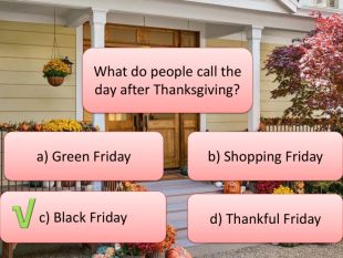 What do people call the day after Thanksgiving?a) Green Fridayc) Black Fridayb) Shopping Fridayd) Thankful Friday√