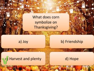 What does corn symbolize on Thanksgiving?a) Joyb) Friendshipc) Harvest and plentyd) Hope√