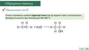 Розглянуто основні типи хімічних реакцій, характерних для спиртів: