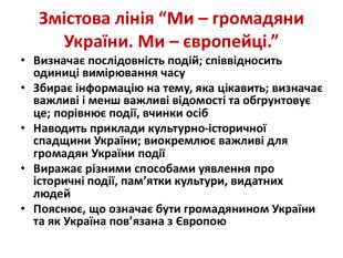 Матеріал допомагає учням зрозуміти, що таке історична пам’ять, як вона формується та впливає на спільноту, а також чому важливо зберігати та вивчати історичні події.