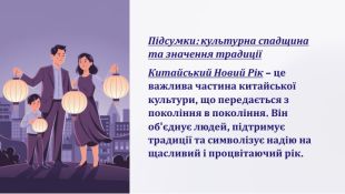 Підсумки: культурна спадщина та значення традиціїКитайський Новий Рік – це важлива частина китайської культури, що передається з покоління в покоління. Він об'єднує людей, підтримує традиції та символізує надію на щасливий і процвітаючий рік.