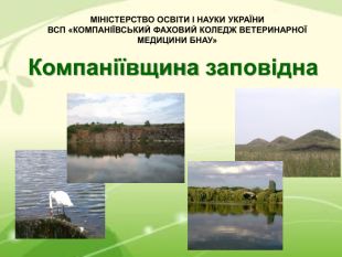 Компаніївщина заповідна МІНІСТЕРСТВО ОСВІТИ І НАУКИ УКРАЇНИ ВСП «КОМПАНІЇВСЬКИЙ ФАХОВИЙ КОЛЕДЖ ВЕТЕРИНАРНОЇ МЕДИЦИНИ БНАУ»